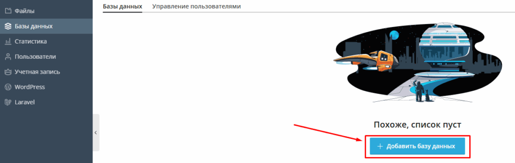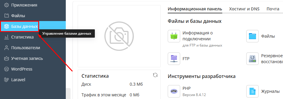 В левой части панели выберите пункт «Базы данных».