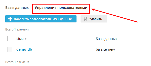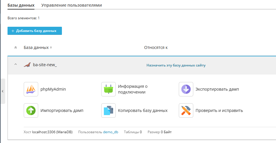 После этого база данных будет добавлена и появится в списке.