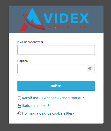 Авторизуйтесь в своей панели Plesk, используя логин и пароль, выданные провайдером.